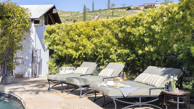Malibu Wine Trail Estate – Where Luxury Meets Serenity Immerse yourself in unparalleled elegance and natural beauty at this breathtaking French-inspired estate on the iconic Malibu Wine Trail. With 3 bedrooms, 5 bathrooms, and 4,900 square feet of refined living space, this villa offers an unforgettable escape, blending artisanal design, world-class amenities, and awe-inspiring surroundings. Your Private Sanctuary Expansive Interiors: Every corner of this home is a work of art, featuring handcrafted furniture, ornate stained glass, and curated pieces from Europe, Africa, and beyond. Luxurious Comfort: Three spacious bedrooms and five beautifully appointed bathrooms ensure restful nights and ultimate relaxation. Unique Character: Discover hidden sitting rooms, timeless fixtures, and an enchanting ambiance with warm, glowing lighting throughout. Outdoor Bliss Spectacular Pool: Dive into the estate’s giant artesian pool, filled with purified water sourced onsite for a truly revitalizing experience. Cigar Lounge: Unwind by the stone fireplace with a glass of local wine while taking in sweeping views of the Three Sisters mountain range. Amphitheater: Perfect for a chamber quartet or an intimate gathering, this space becomes magical at sunset with natural breezes year-round. Strolling Paths: Wander under the ancient olive and cypress trees, feeling as though you’ve stepped into the heart of Provence. Tailored Experiences Zen and Culinary Delights: Expand your horizons with yoga classes or indulge in meals prepared by a private chef, showcasing the best local ingredients. Adventure Awaits: Rent mountain bikes to explore nearby trails or visit surrounding vineyards for wine tastings and stunning vistas. Eco-Luxury: From the pool to your morning shower, enjoy the benefits of natural spring water purified onsite, leaving you refreshed and revitalized. Perfectly Positioned Located in Malibu, this villa offers the best of both worlds: serene mountain vistas and proximity to the region’s most sought-after destinations. Natural Beauty: Steps from the Santa Monica Mountains National Recreation Area, with Malibou Lake and Malibu Creek State Park nearby. Fine Dining: Enjoy world-class cuisine at renowned spots like Nobu Malibu, Geoffrey’s Malibu, and Zuma Sushi. Cultural Excursions: Explore local wineries, equestrian parks, and hidden gems like the Canyon Club and Malibu Equestrian Park. Why Choose Malibu Wine Trail Estate? This isn’t just a villa; it’s an experience that caters to the soul, offering serenity, adventure, and luxury in equal measure. Whether you’re planning a romantic getaway, a family retreat, or a special celebration, the Malibu Wine Trail Estate promises memories that will last a lifetime. Exclusive Design: Artistic interiors and luxurious finishes make every stay unique. Unmatched Views: Bask in the stunning panoramas of the Santa Monica Mountains and Malibu’s iconic wine country. Elite Location: Enjoy the privacy of a secluded estate while remaining connected to Malibu’s vibrant culture and attractions. Your Next Great Escape Awaits Transform your dream vacation into a reality at Malibu Wine Trail Estate. With its timeless beauty, modern amenities, and unbeatable location, this estate is the ultimate retreat for discerning travelers. Book now and discover why this estate is one of Malibu’s most cherished hidden treasures.